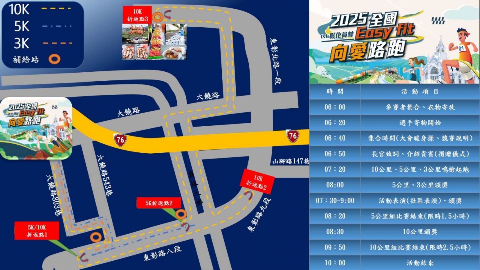 | 2 | 3K | 5K、10K | 員林大道九段 | 水、運動飲料、滷味、當季水果 |