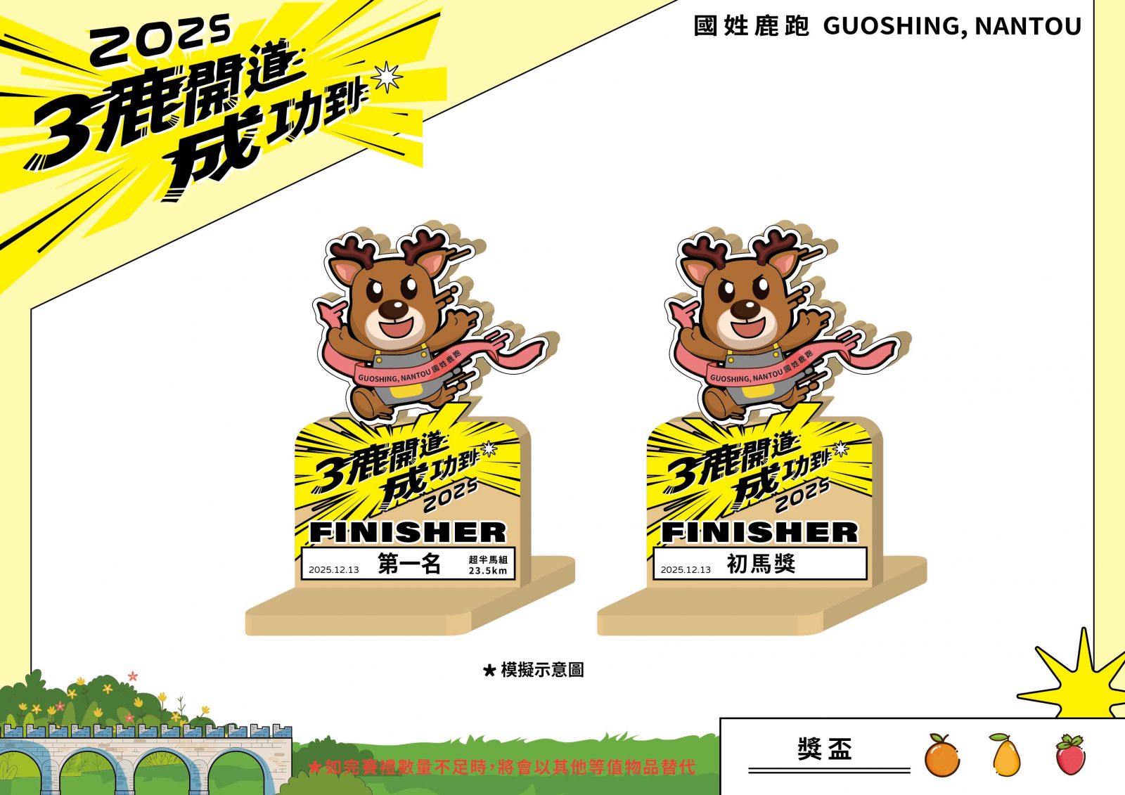 無論您參加的是:4.5 公里的快樂組、13 公里的挑戰組及23 公里的超半馬組或是極具挑戰性的全馬組,我們都希望您能在這場充滿趣味、歡樂與活力的「國姓鹿跑」中,為健康人生邁出堅定步伐。同時,我們將活動盈餘提撥捐助國姓鄉公所老人共餐基金,落實公益理念,一起提升體能、釋放壓力、關懷在地。「國姓鹿跑—三鹿開道 成功到!」