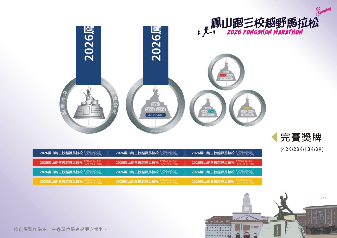 1、驍勇善戰42.195公里組:2026年3月15日(星期日)06:05升旗後起跑。