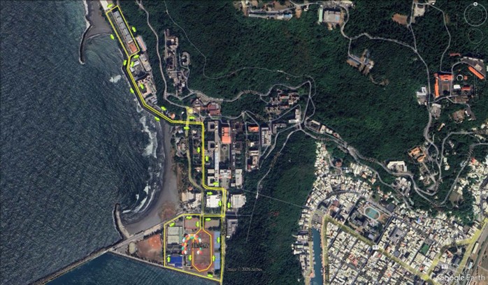 | 操場起點逆時針繞行⮕右轉國研大樓方向⮕左轉體育館方向⮕左轉幼兒園方向⮕沿落日大道⮕右轉郵局方向(翠亨道)⮕沿翠亨道(上坡)⮕左轉翠嶺道(上坡)⮕沿翠嶺道⮕右轉往武嶺宿舍(上坡)⮕靠右往武嶺四村方向(上坡)⮕繞行武嶺宿舍(於武嶺三村後方通過感應點)⮕右轉翠嶺道續行(下坡)⮕右轉蓮海路往柴山大道方向(上坡)⮕左轉往海科院斜坡(下坡)⮕右轉往海科院籃球場方向⮕左轉往海科院前道路⮕沿海科院前道路⮕右轉幼兒園方向⮕沿落日大道⮕右轉往體育哨⮕沿蓮海路⮕左轉海堤方向⮕右轉棒球場及網球場中間道路⮕右轉海堤停車場⮕右轉往操場方向終點。 |